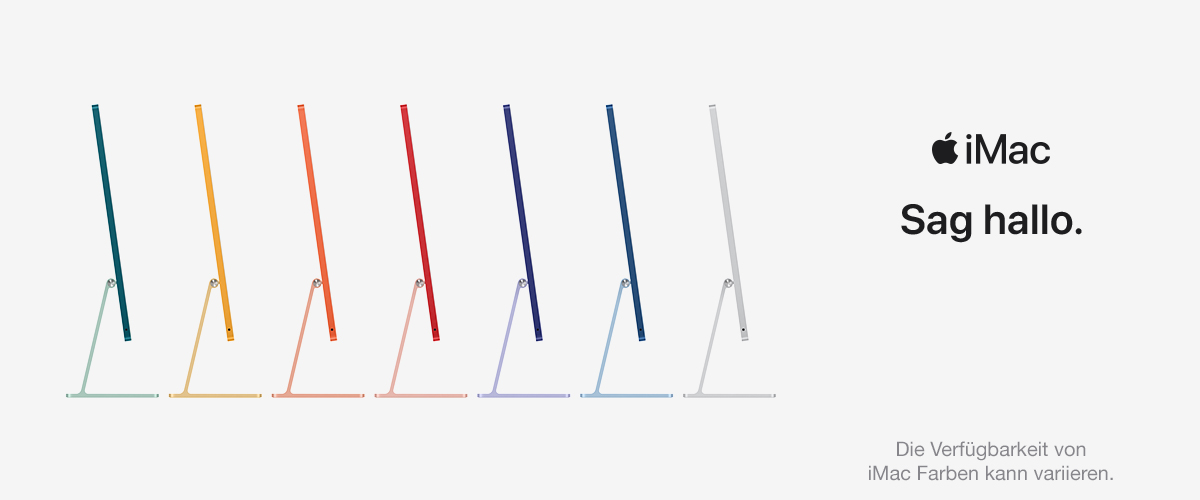 Der neue iMac 24" bringt alles, was Sie am iMac schon immer lieben, auf ein völlig neues Level: Er ist der persönlichste, leistungsstärkste und unterhaltsamste Mac, den es je gab. Das 24" 4,5K Retina-Display mit 11,3 Mio. Pixeln, 500 Nits Helligkeit und über einer Milliarde Farben sorgt für ein brillantes und lebendiges Seherlebnis. Außerdem verfügt der neue iMac über eine 1080p FaceTime HD-Kamera, Mikrofone in Studioqualität und ein Soundsystem mit 6 Lautsprechern — die beste Kamera und das beste Audio, die je in einem Mac verbaut wurden.